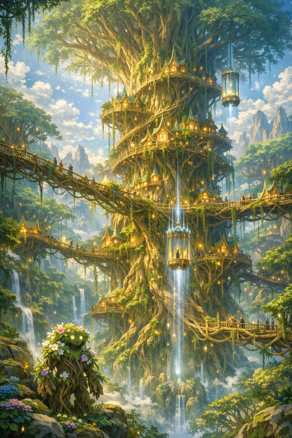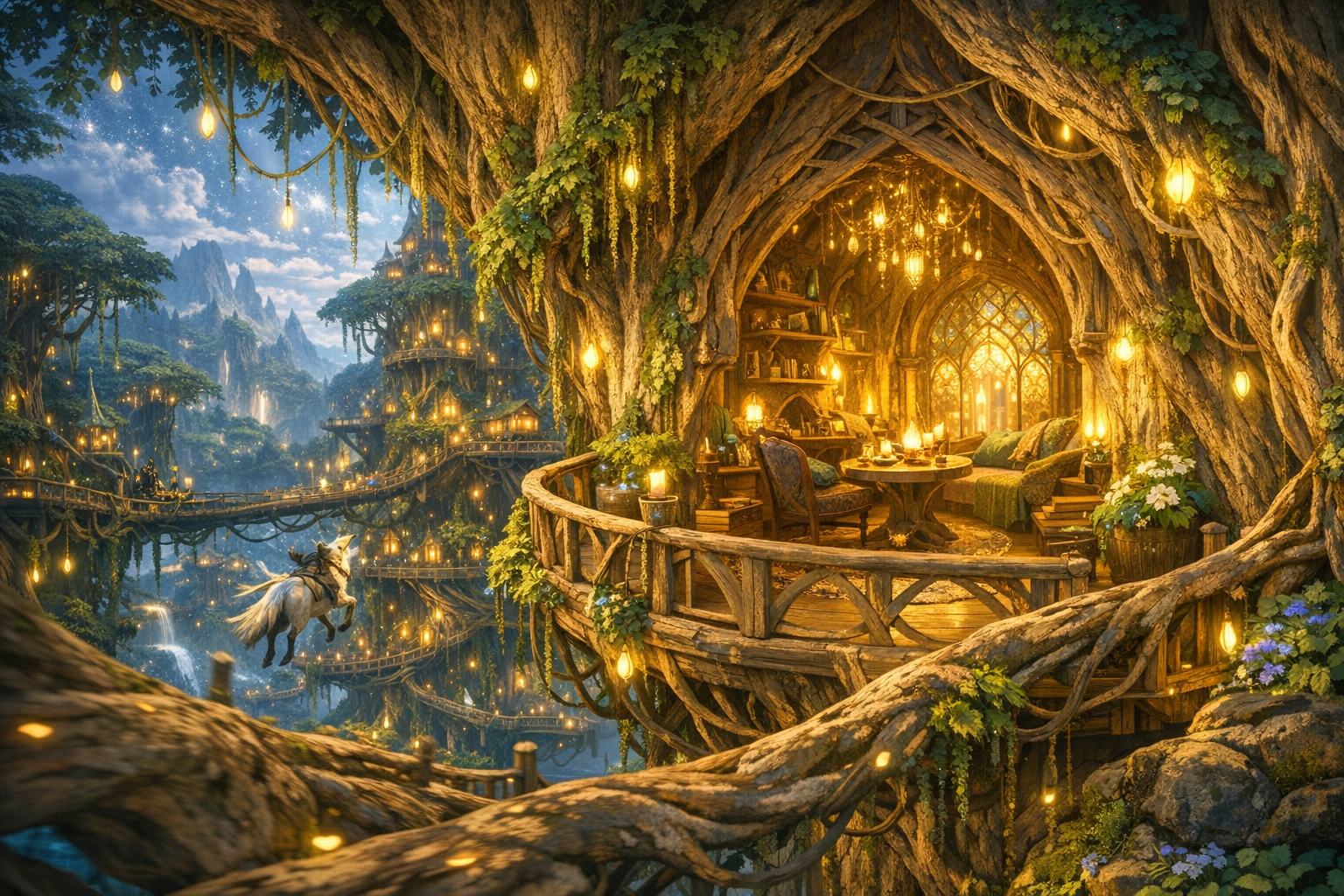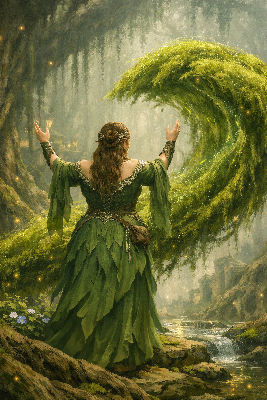 Tipo de cultura: La ciudad se despliega en torno a un árbol ancestral cuya presencia domina el horizonte, y sus viviendas, talladas en la madera viva de los troncos o en el corazón de los árboles, forman parte del bosque como si siempre hubieran estado allí. Esta simbiosis con la naturaleza no es solo estética: es el canal por el que fluye su magia. La música, el susurro de las hojas y el ritmo de los elementos alimentan el poder de sus habitantes. La vida en Escandur transcurre con la cadencia del bosque: pausada, profunda y cargada de significado. Cada decisión se toma con la paciencia que otorgan siglos de existencia, y cada rito está ligado al ciclo de la vida que Aserén, dios de la vida, representa y protege.